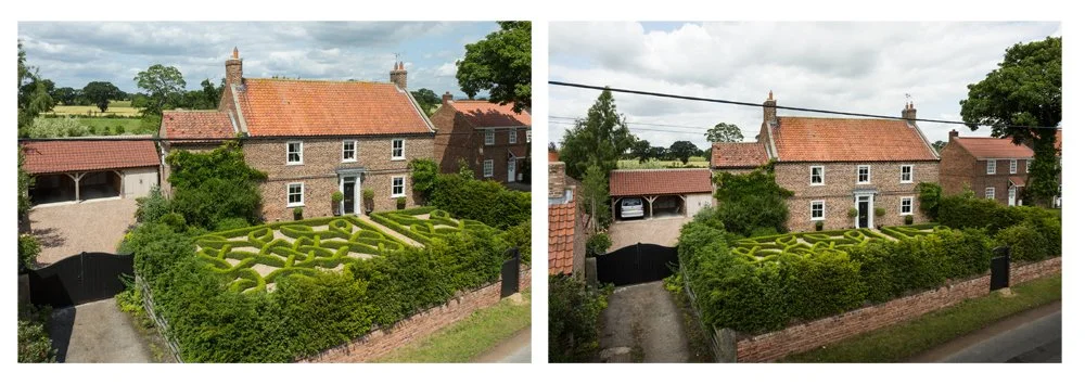 Planning! There are a number of useful websites that enable us to track the sun so we know the best time of day to photograph your house. We also constantly monitor the weather forecast to make sure we capture your home in glorious sunshine. A few extra things to note in this before and after is how we have chosen a height to hide the telegraph wires and make them less obvious and made sure there are no vehicles in the car port.